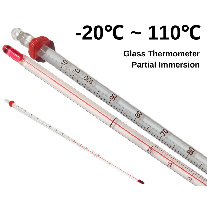 Product Name Glass Alcohol Thermometer Temperature Range -20C to 110C Material Glass Type Alcohol Thermometer Recommended Use Laboratory, Educational, General Science Experiments Easy to Read Black numbering on a white or yellow background and red alcohol indicator Safety Environmentally safe for use at home or school Similar Products
