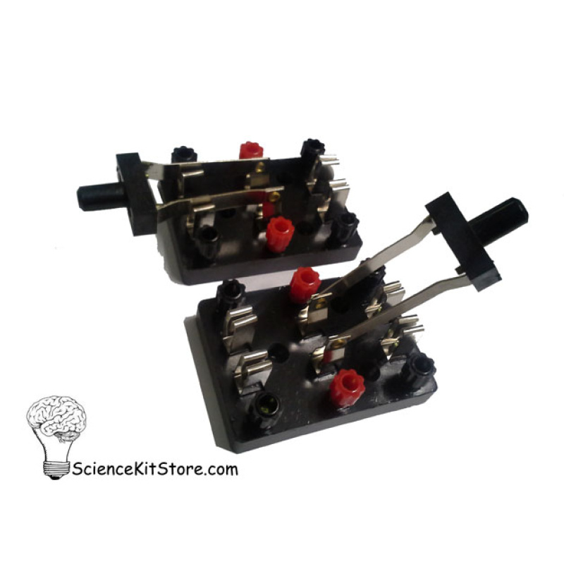 This Knife Switch, Double Pole Double Throw is perfect for experiments and science projects. It features a cross, X-connector design and includes screw type binding posts as well as 3 screw holes for mounting on a board. This discontinued product is available in limited quantities at super low prices. Don't miss out on this great deal!